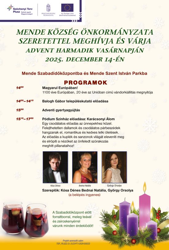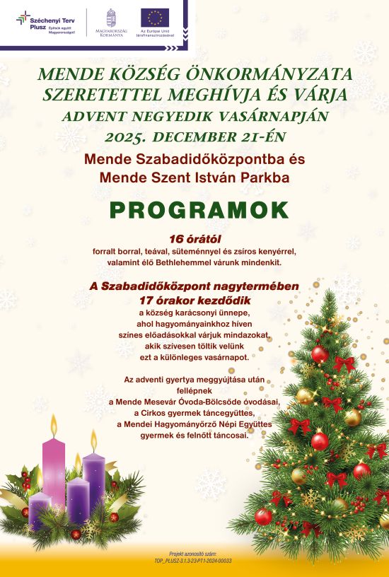 Szeretettel várjuk Önöket a IV. Adventi Vasárnap rendezvényén!