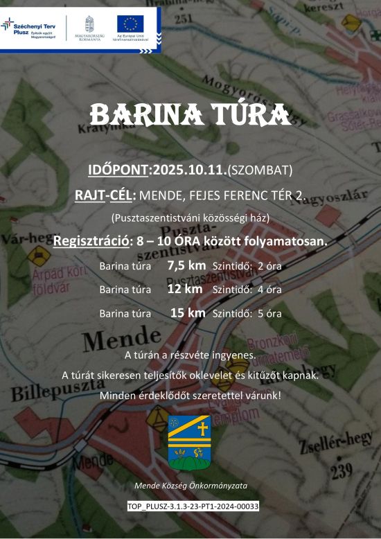 Mende Község Önkormányzata Terület- és Településfejlesztési Operatív Program Plusz keretében a TOP_PLUSZ-3.1.3-23-PT1-2024-00033 azonosítószámú "Helyi Humán Fejlesztések Mendén" című projektjét elindítja.